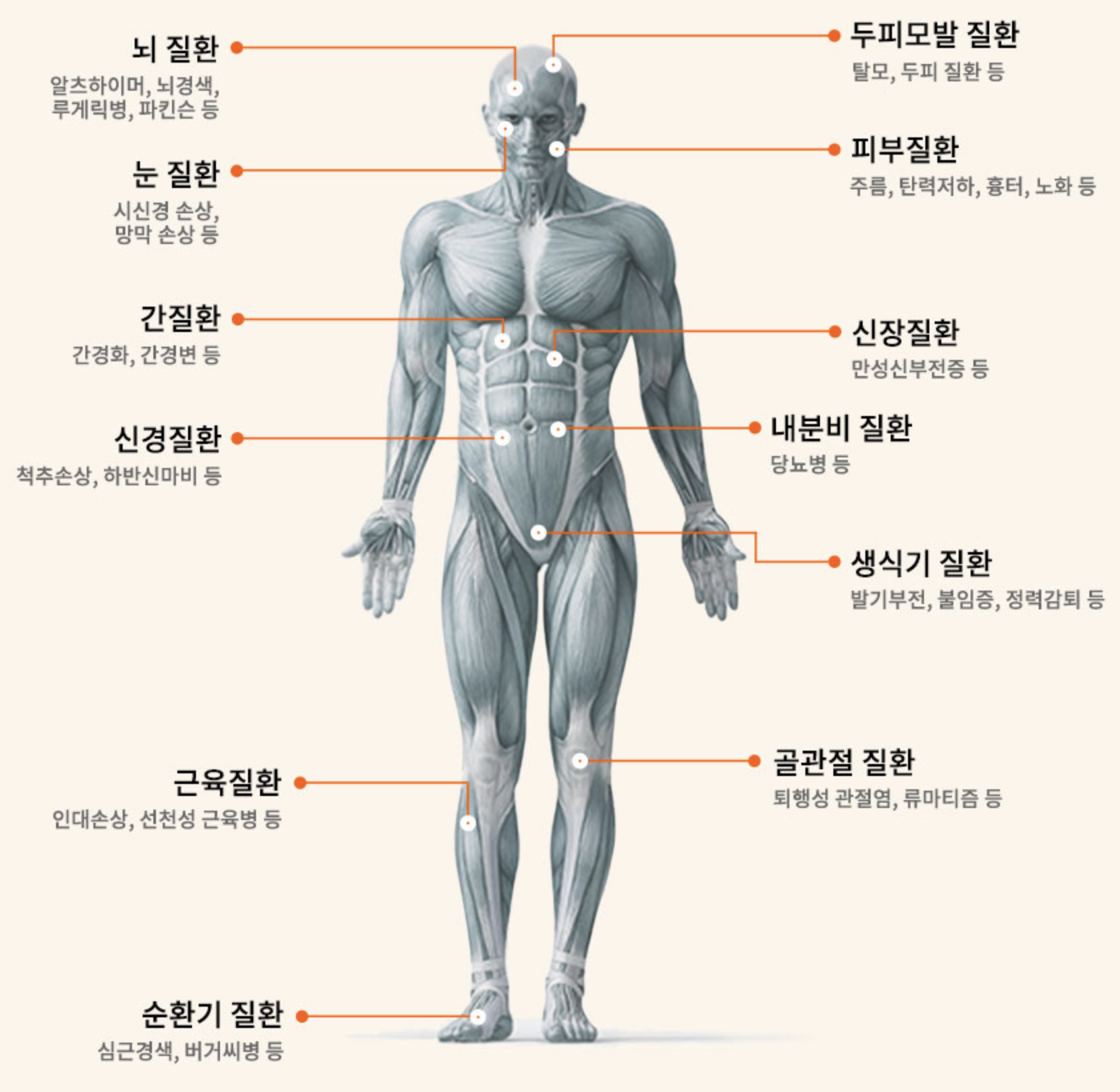 - 혈관재생 : 손상된 혈관을 재생하여 원활한 혈액공급 도모